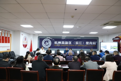 区教育局相关科室人员就人事、智慧教育、宣传等方面工作进行了汇报交流。