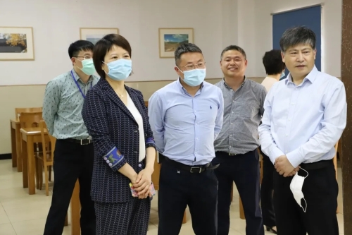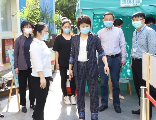 4月30日下午,包嘉颖副区长到学校检查指导开学工作和幼儿园复学准备工作。区教育局党委书记、局长来江飞、区府办副主任徐俏俏、区社发局副局长胡斌等人陪同。