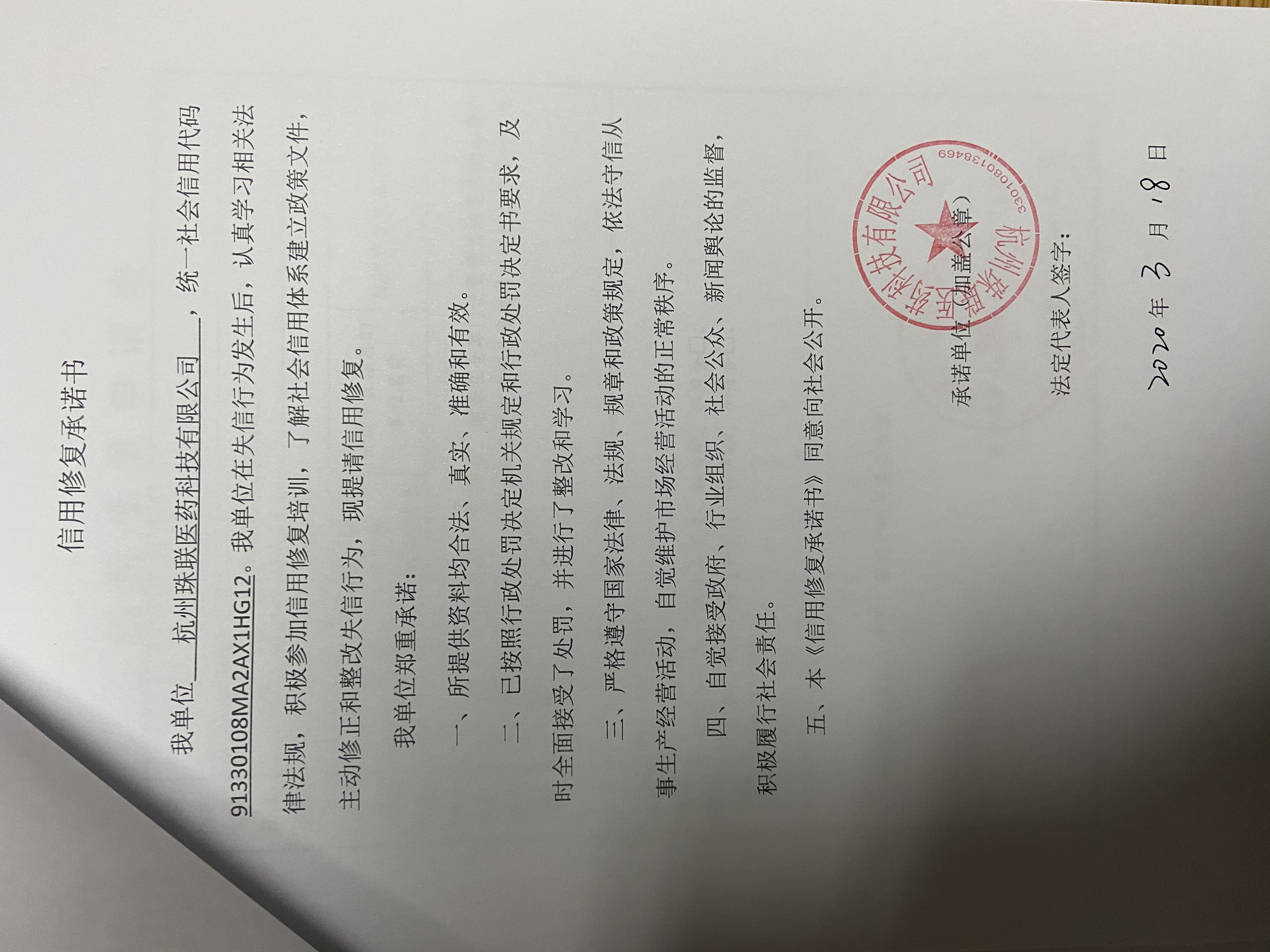 杭州珠联医药科技有限公司信用修复